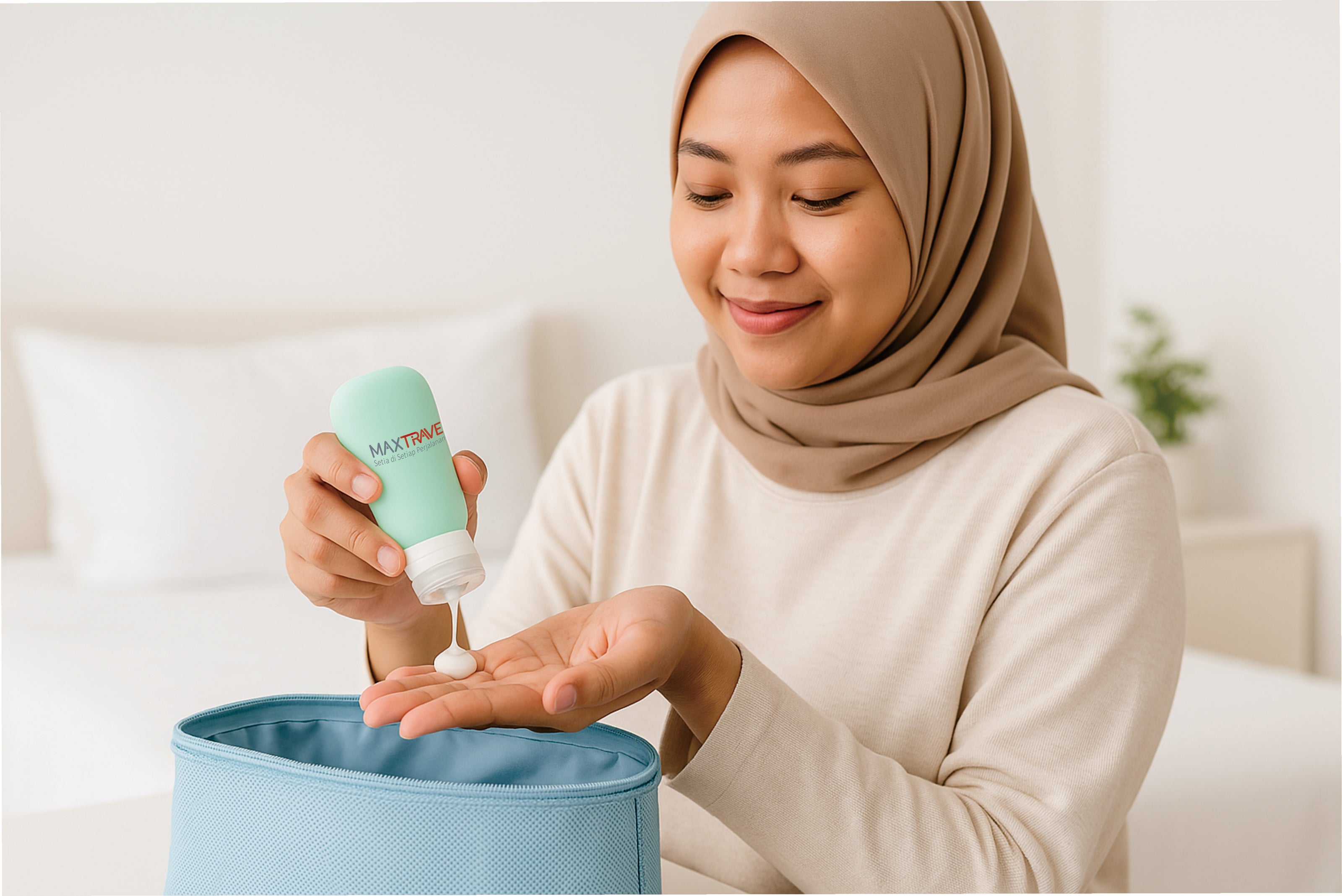 Dengan botol lotion travel MAXTRAVE semua jadi aman.
